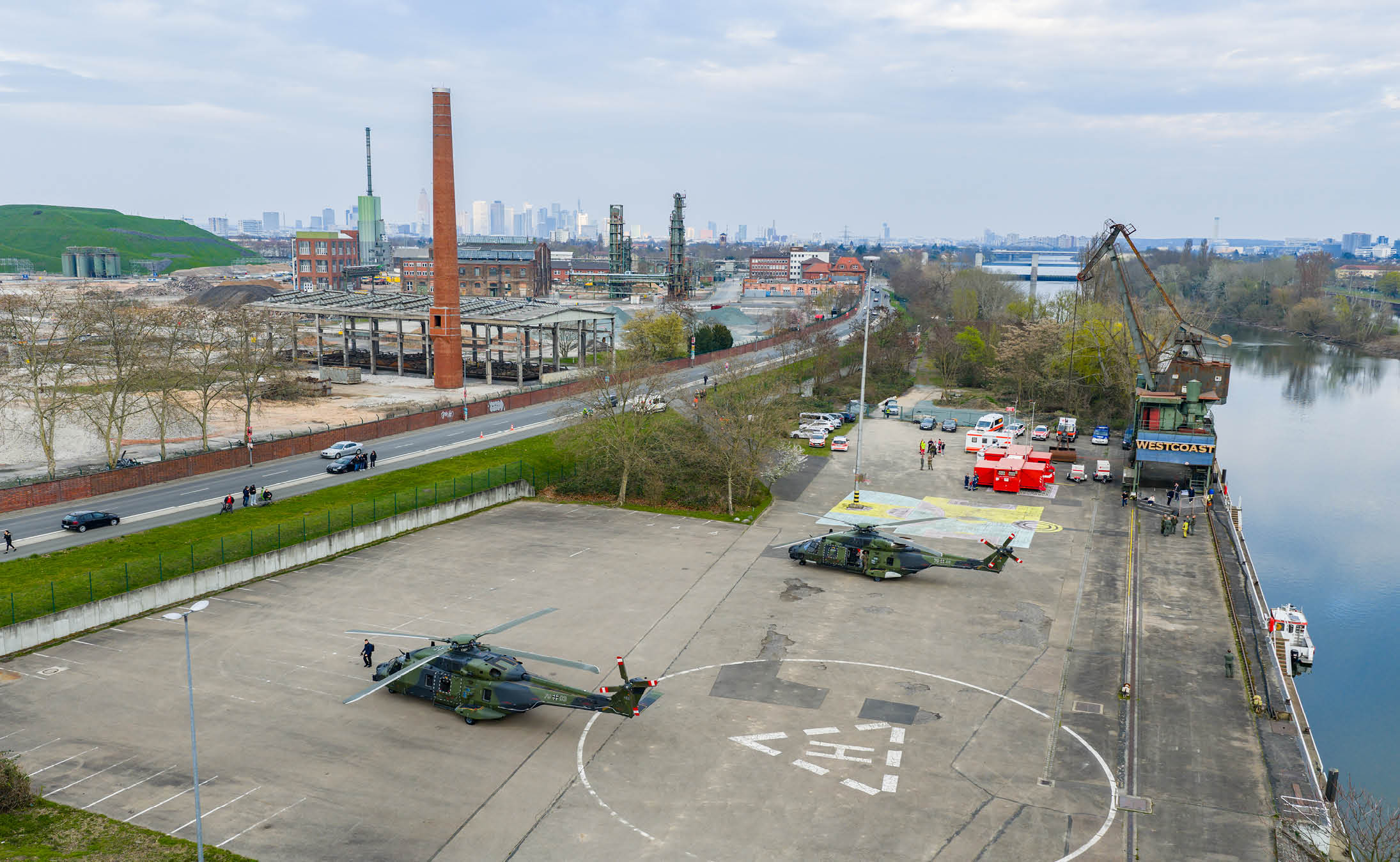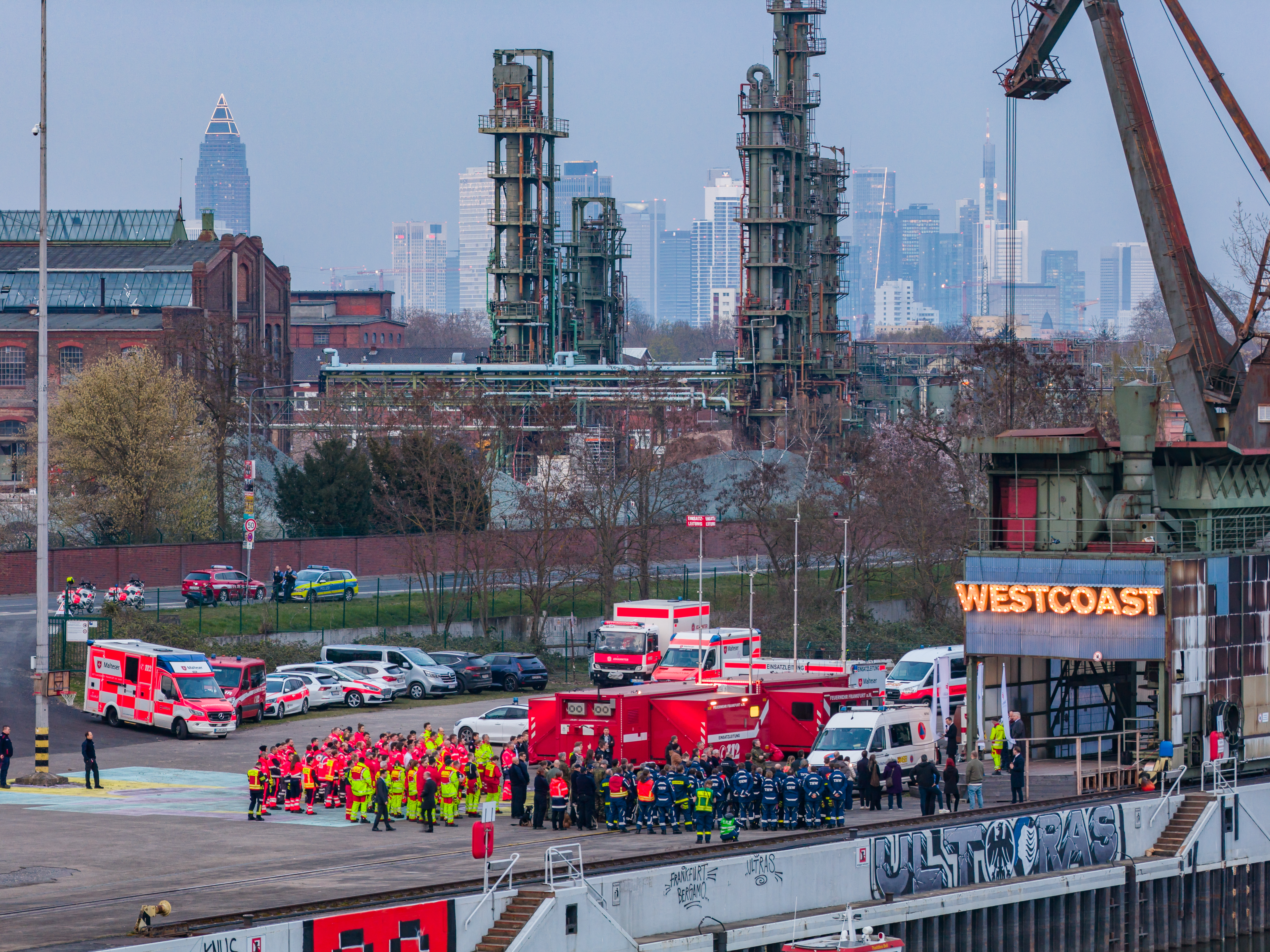 Ein entscheidender Faktor: das Ehrenamt. Der überwiegende Teil der Einsatzkräfte engagiert sich freiwillig und bildet damit das Rückgrat des Katastrophenschutzes in Deutschland. Darüber hinaus unterstützte die Bundeswehr die Übung mit zwei Mehrzweckhubschraubern vom Typ NH90 sowie dem Kreisverbindungskommando. In der FRANKFURT WESTSIDE konnten diese Einheiten ihre Abläufe erstmals in einem urbanen Quartier unter realistischen Bedingungen erproben.