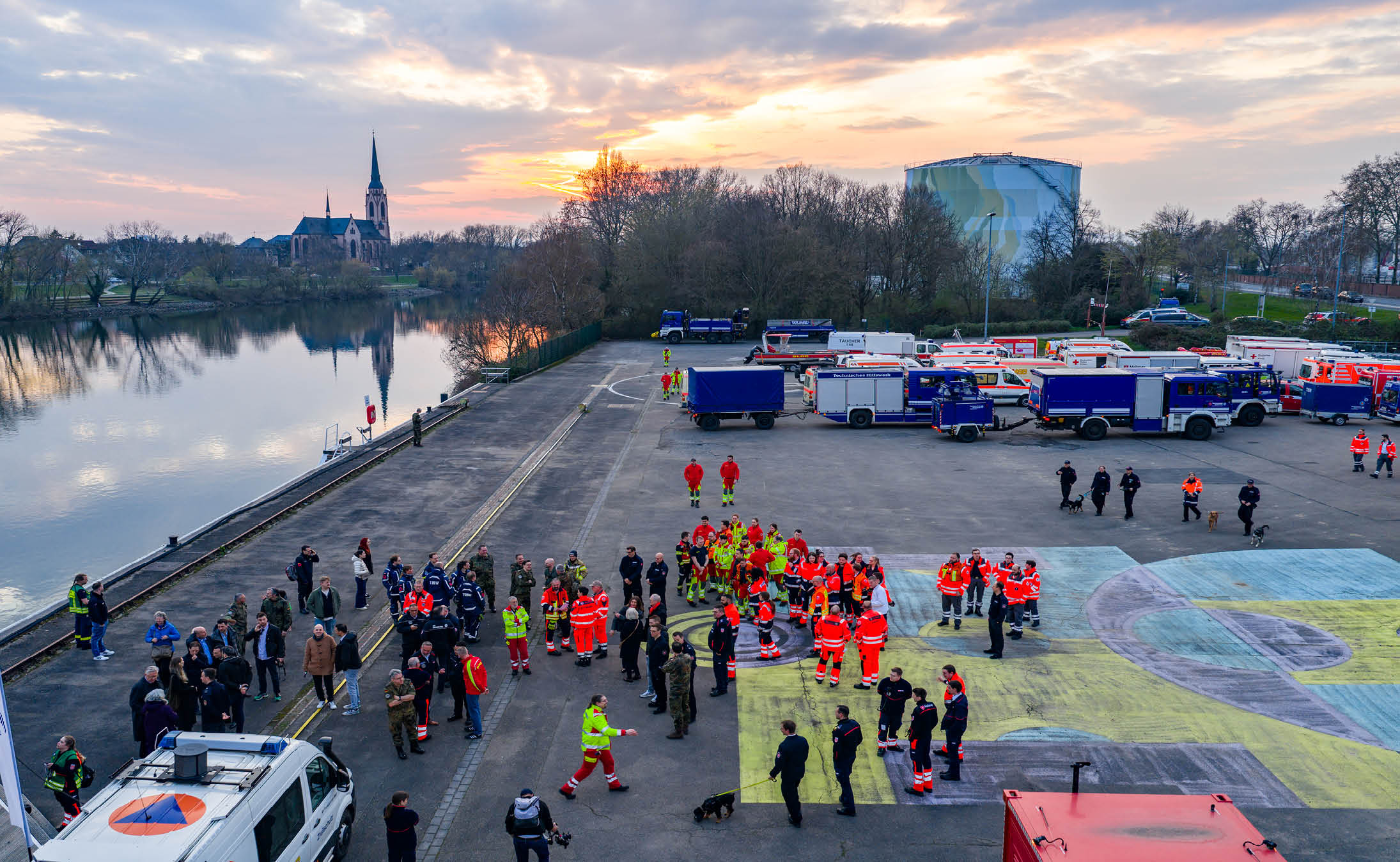 Ziel der Übung war es, Einsatzabläufe unter möglichst realistischen Bedingungen zu testen und die Zusammenarbeit der verschiedenen Akteure zu stärken. „Wir üben über das ganze Wochenende ein Erdbeben-Szenario zusammen mit Hochwasserlagen in fiktiven Ländern. Wir haben 250 ehrenamtliche Einsatzkräfte, rund 63 Fahrzeuge, Rettungshunde, zwei Hubschrauber der Bundeswehr und 25 Soldatinnen und Soldaten – und das Gelände WESTSIDE ist dafür ein wunderbares Übungsobjekt“, erklärt Jan Krebs, Einsatzleiter bei den Maltesern in Frankfurt am Main.