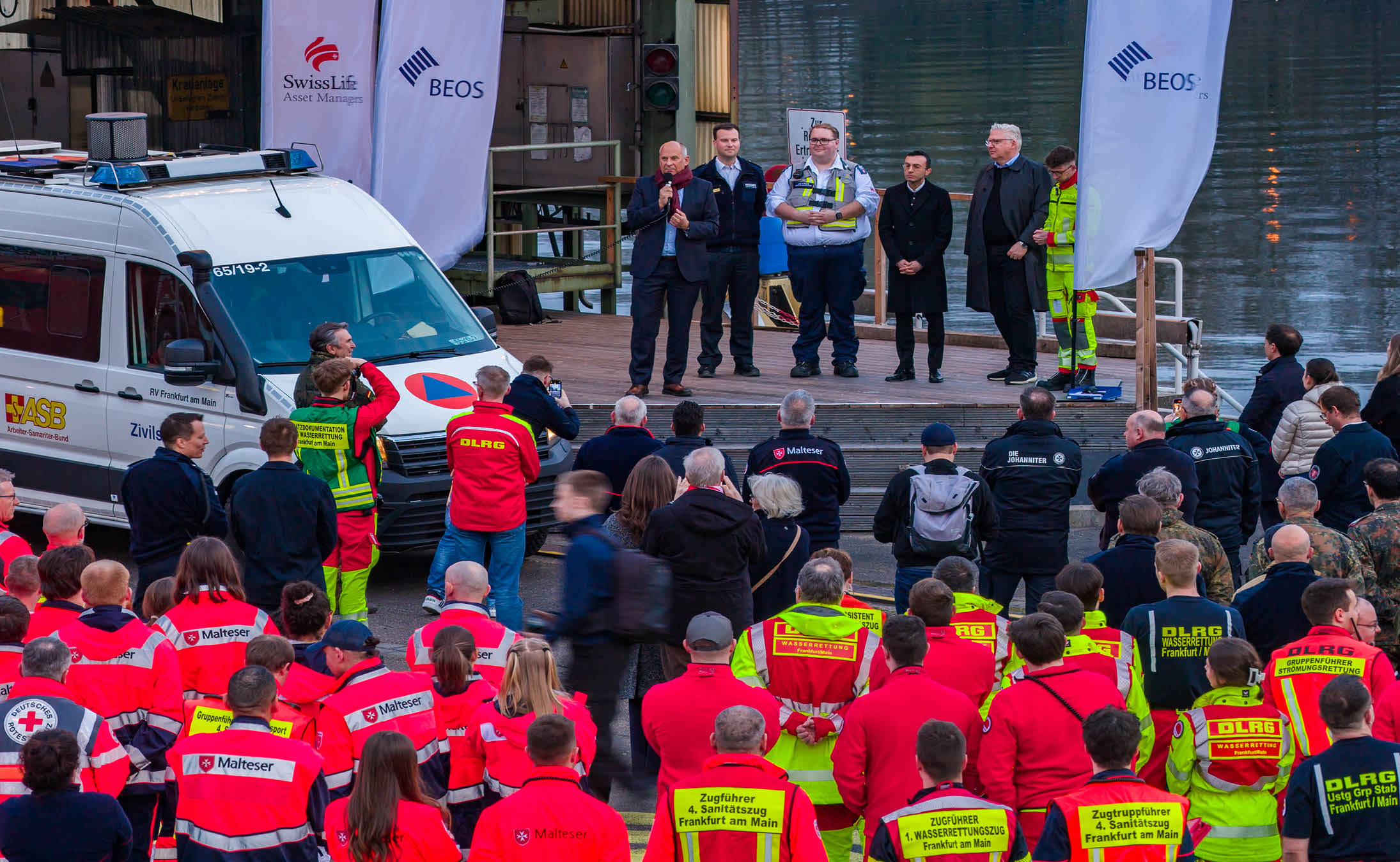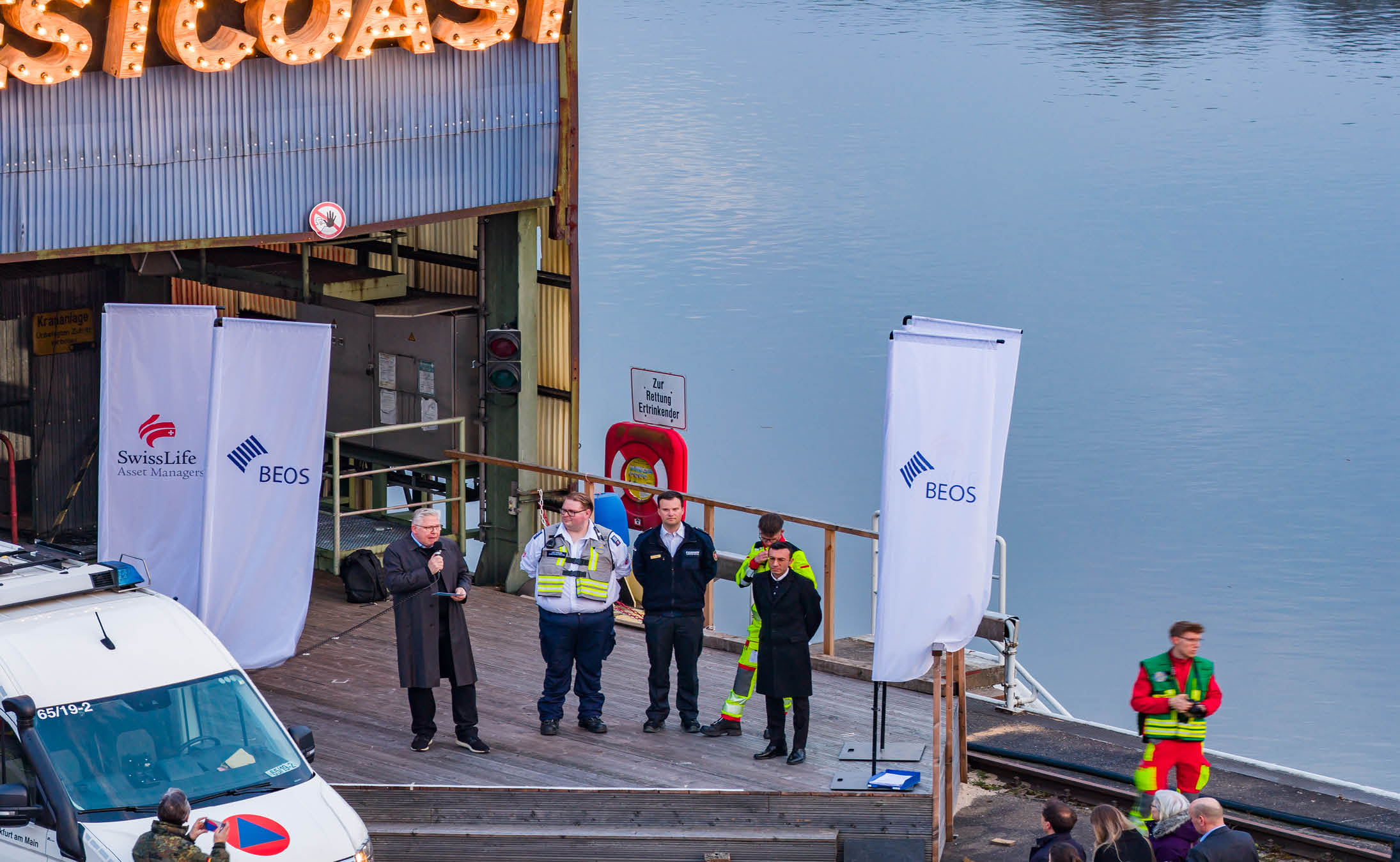 „Wir haben hier ein wunderbares Areal zur Verfügung. Gerade in der heutigen Zeit ist klar: Ohne Sicherheit geht nichts. Als die Anfrage der Malteser kam, waren wir sofort bereit, einen gesellschaftlichen Beitrag zu leisten und unser Areal den Einsatzkräften zur Verfügung zu stellen“, sagt Mathias Strauch, Head RE Development Westside, BEOS AG.